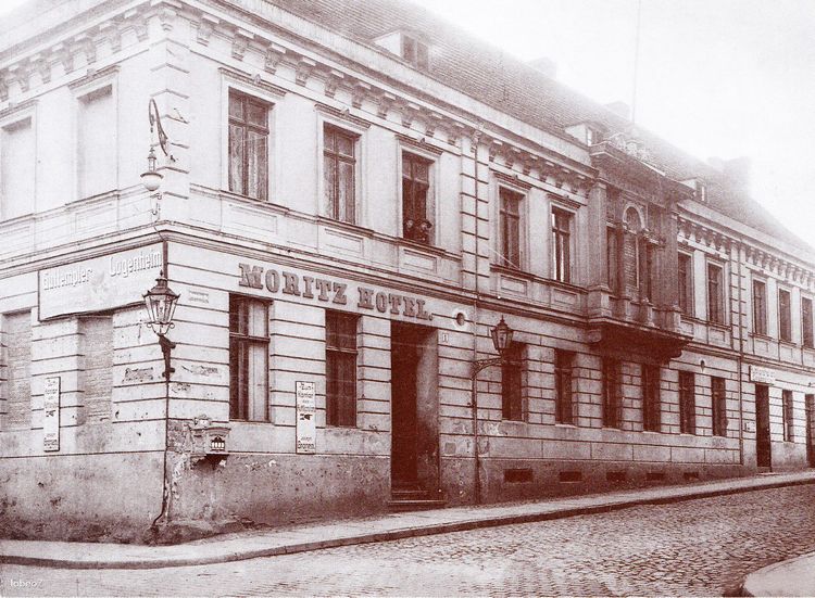 Budynek powstał w 1878 roku. Wzniesiono go pierwotnie jako część hotelu „Moritz”, który funkcjonował w tym miejscu znacznie wcześniej.  Początkowo był to obiekt dwukondygnacyjny, ze stromym dachem krytym dachówką.