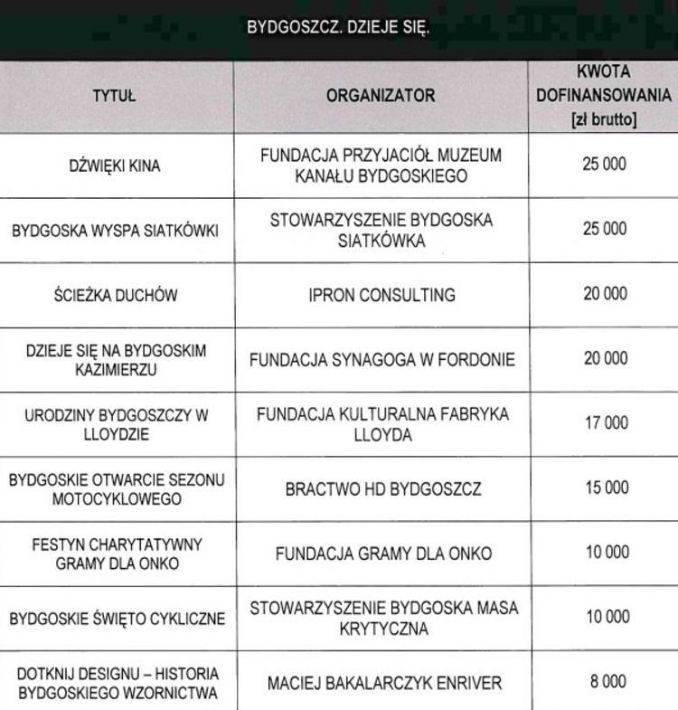 W ramach konkursu „Bydgoszcz. Dzieje się” zgłoszono 31 projektów, z których 9 uzyskało wsparcie finansowe: