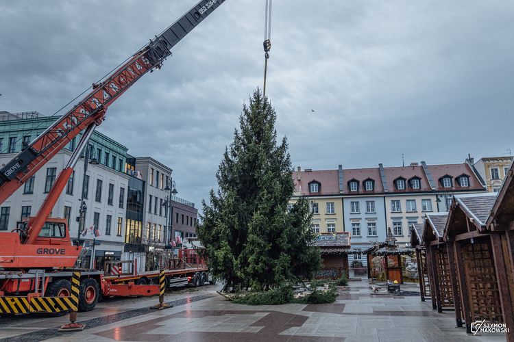 W Bydgoszczy coraz bardziej czuć magię zbliżających się świąt. W piątek (14.11) wcześnie rano na Stary Rynek przyjechało świąteczne drzewko - stanęło w osi ulicy Mostowej, dzięki temu będzie bardzo dobrze widoczne z Mostu Staromiejskiego, gdzie już za kilka dni rozpocznie się Bydgoski Jarmark Świąteczny.