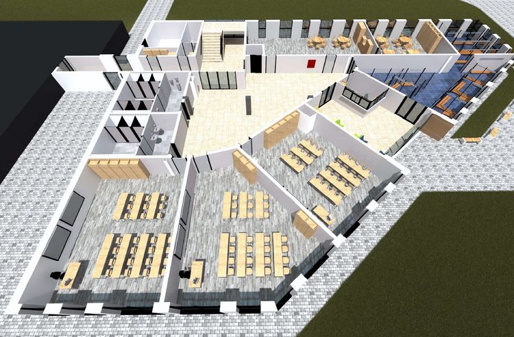 - Liczba pomieszczeń lekcyjnych – 16 sal dla 400 uczniów