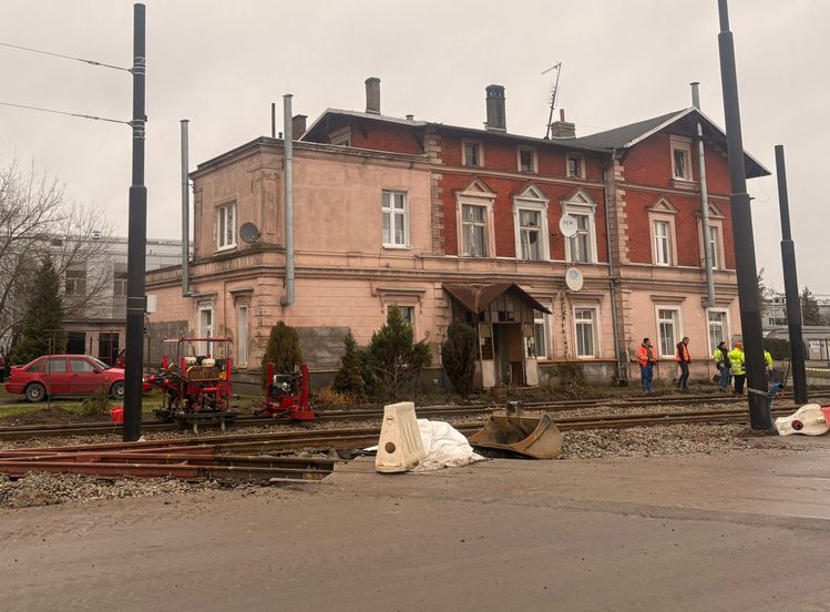 Wykonawca realizuje roboty przy torze południowym oraz na odcinku torowiska łączącym pierwszy z drugim wjazdem do zajezdni.