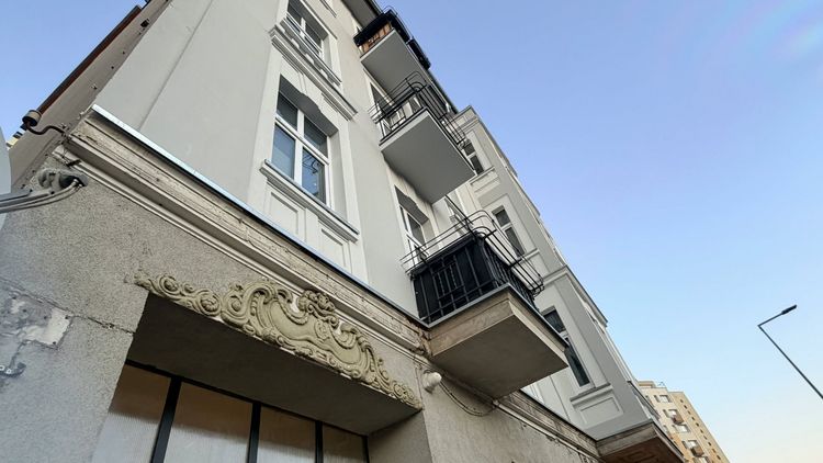W część budynku od strony frontowej wkomponowano również wykusz. W niższej, zachodniej części budynku zaprojektowano natomiast balkony z balustradami z kutego żelaza. Wjazd na zaplecze posesji umożliwia przejazd bramny zdobiony płaskorzeźbą. Elewacje frontową zdobią też płyciny i lizeny akcentujące pionowe podziały. Część elementów jest charakterystyczna dla późnej secesji.