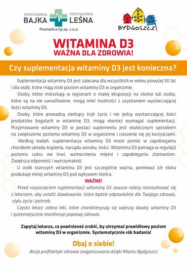 BADANIE POZIOMU WITAMINY D3 WRAZ Z KONSULTACJAMI DLA MIESZKAŃCÓW MIASTA BYDGOSZCZY