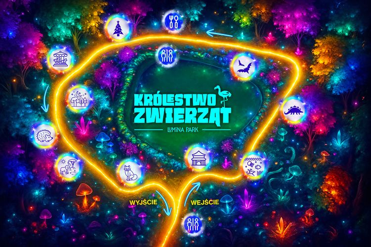 Na odwiedzających czeka ponad 150 instalacji świetlnych, w tym nowa technologia świetlna Chińskich Lampionów a także punkty interaktywne, które ożywiają barwny świat fauny: od majestatycznych drapieżników, przez egzotyczne gatunki, aż po sympatyczne leśne stworzenia. Spacer w Królestwie Zwierząt pozwala odkryć magię światła, muzyki i natury, tworząc wyjątkowe doświadczenie zarówno dla dzieci, jak i dorosłych.