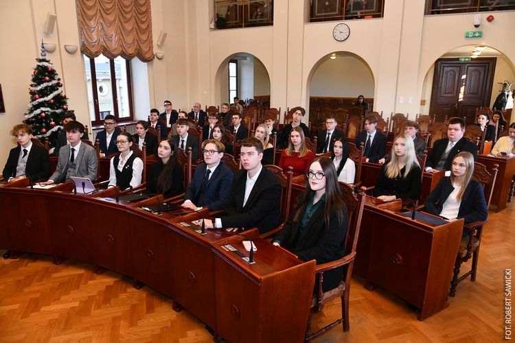 Uroczysta I sesja nowo wybranej jubileuszowej X kadencji Młodzieżowej Rady Miasta Bydgoszczy odbyła się w czwartek, 11 grudnia 2025 roku w sali sesyjnej bydgoskiego ratusza. Podczas inauguracji młodzi radni złożyli ślubowanie, wybrali Prezydium Rady, a także poznali harmonogram pierwszych działań oraz plan pracy na nadchodzący rok. W wydarzeniu wzięli udział przedstawiciele władz miasta oraz Rady Miasta a także zaproszeni goście. - Gratuluję wszystkim, którzy pomyślnie przeszli przez wybory. To dla Was wyjątkowy moment. Reprezentowanie osób, które oddały na Was swój głos i obdarzyły Was zaufaniem, jest nie tylko zaszczytem, ale także dużym zobowiązaniem. Życzę Wam, abyście czerpali satysfakcję z wykonywania swoich obowiązków i z dumą realizowali powierzone zadania – mówił podczas uroczystej sesji Prezydent Miasta Rafał Bruski.