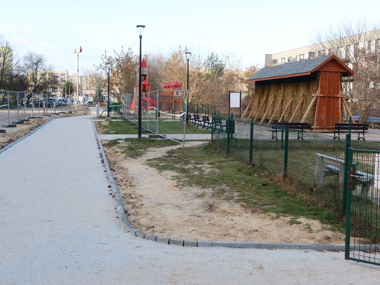Budowane są między innymi ścieżki dla pieszych i rowerzystów. Częścią zadania jest ich oświetlenie. Zależy nam również na doposażeniu terenu rekreacyjnego w dodatkową zadaszaną piaskownicę, huśtawkę, bujaki, kosze na śmieci, domek dla owadów, ścianki do rysunków graffiti. Całość uzupełni zieleń. Prace wykonuje firma Affabre, z którą podpisaliśmy umowę o wartości prawie 680 tysięcy złotych. Zakończenie wszystkich prac planowane jest wiosną 2026r. Zadnie do realizacji wybrali mieszkańcy w głosowaniu na Bydgoski Budżet Obywatelski.