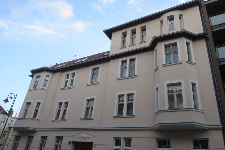 Frontową kamienicę wzniesiono około 1900 roku. Powstała na planie zbliżonym do prostokąta. Na parceli znajduje się jeszcze oficyna w kształcie litery „L”. Elewacja frontowa zdobiona jest gzymsami i obramieniami otworów okiennych. Pod linią dachu zachowały się konsole. Parter jest boniowany. Wejście ulokowano od strony wjazdu na teren parceli. Stanowi wsparcie dla dużego balkonu. Ścianę szczytową wyróżnia również schodkowe zwieńczenie. Remont przywróci kamienicy estetyczny wygląd.