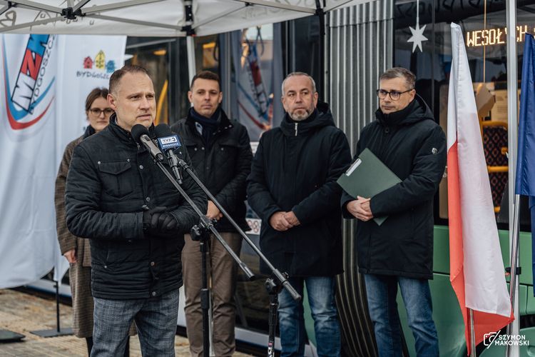 - Tradycję buduje się długo, ale zależy nam by na bydgoskie tory co roku, wyjeżdżał świąteczny tramwaj. Rozpoczęliśmy ją w ubiegłym roku i będziemy kontynuować. Myślę że ten skład z wieloma świątecznymi i bydgoskimi akcentami będzie cieszył oko wszystkich pasażerów i osób które będą go mijały- mówił zastępca prezydenta Bydgoszczy Łukasz Krupa. W prezentacji tramwaju udział wzięli także przedstawiciele ZDMIKP, MZK i Pesy.