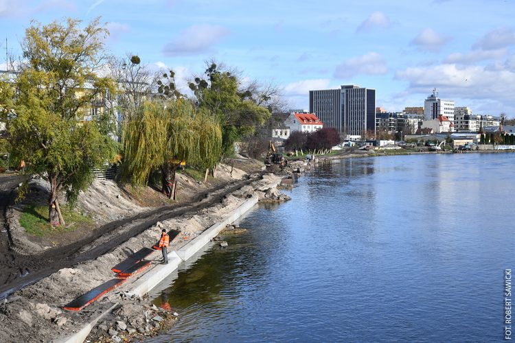 W kwietniu br. zawarliśmy umowę z wykonawcą odpowiedzialnym za projekt i budowę bulwarów pomiędzy ul. Żabią oraz mostem Kazimierza Wielkiego. Trwają zaawansowane prace projektowe. Wykonawcą została firma Aarsleff. Wartość inwestycji to 18,6 mln zł. Na tym odcinku zależy nam na wykorzystaniu w maksymalnym stopniu istniejącej zieleni oraz zastosowaniu w większym stopniu naturalnych materiałów do umocnienia brzegów.
