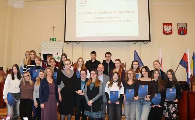 W dniu 28 października 2025 roku w Sali Sesyjnej Ratusza odbyło się jubileuszowe XXX Forum Ochrony Środowiska. Wydarzenie od lat poświęcone jest zagadnieniom ochrony środowiska i stanowi doskonałą okazję do poznania problemów ekologicznych oraz zwiększenia świadomości ekologicznej. W tym roku tematem przewodnim była gospodarka odpadowa w mieście. Forum odbyło się pod hasłem „Odpady komunalne – odpowiedzialność zaczyna się już dziś” i uczestniczyło w nim 90 osób z 15 bydgoskich szkół ponadpodstawowych.