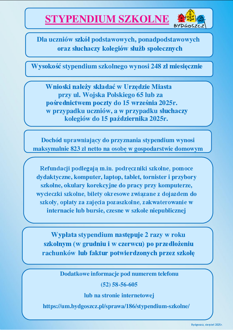 Informacja o stypendiach i zasiłkach szkolnych